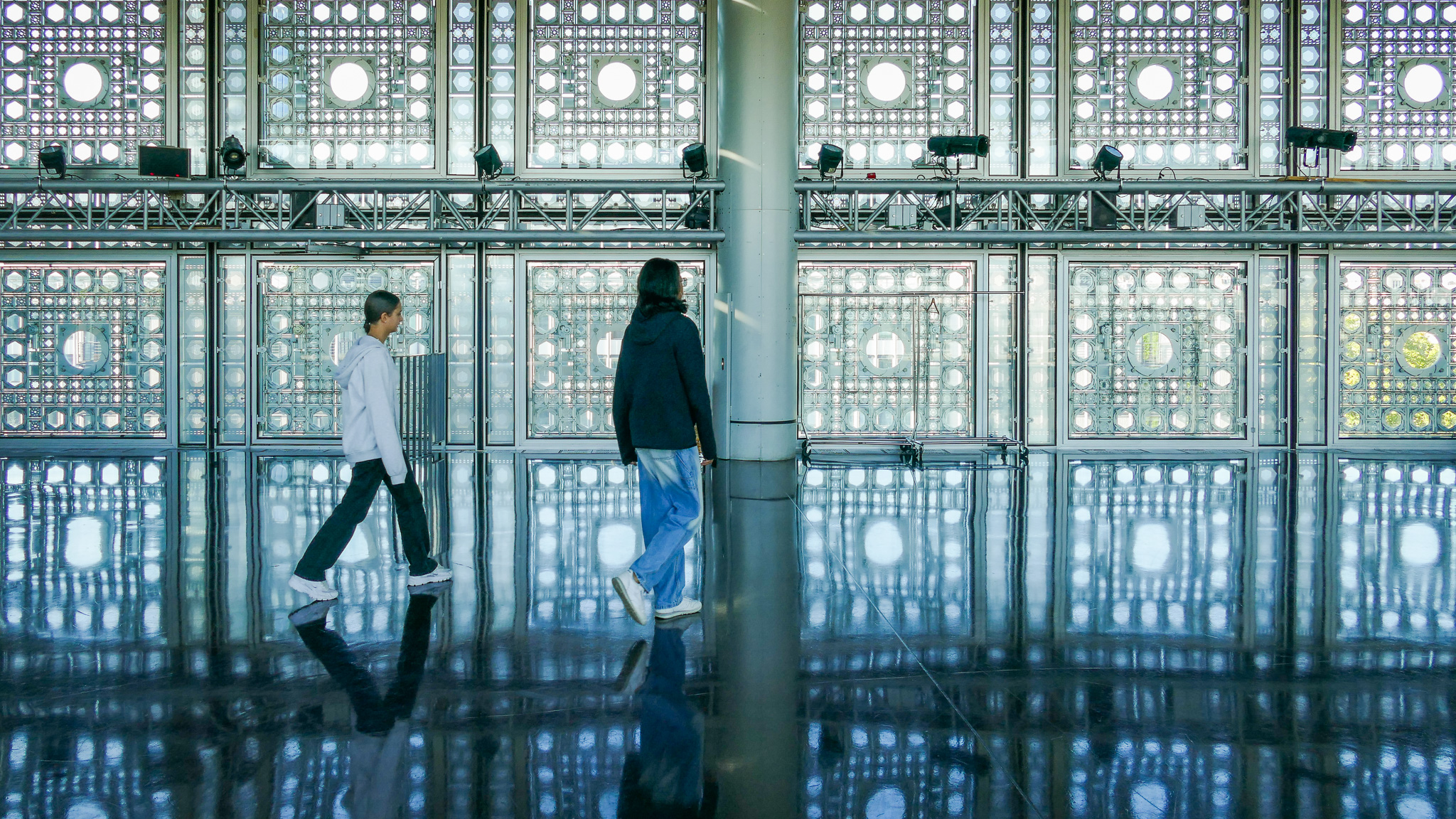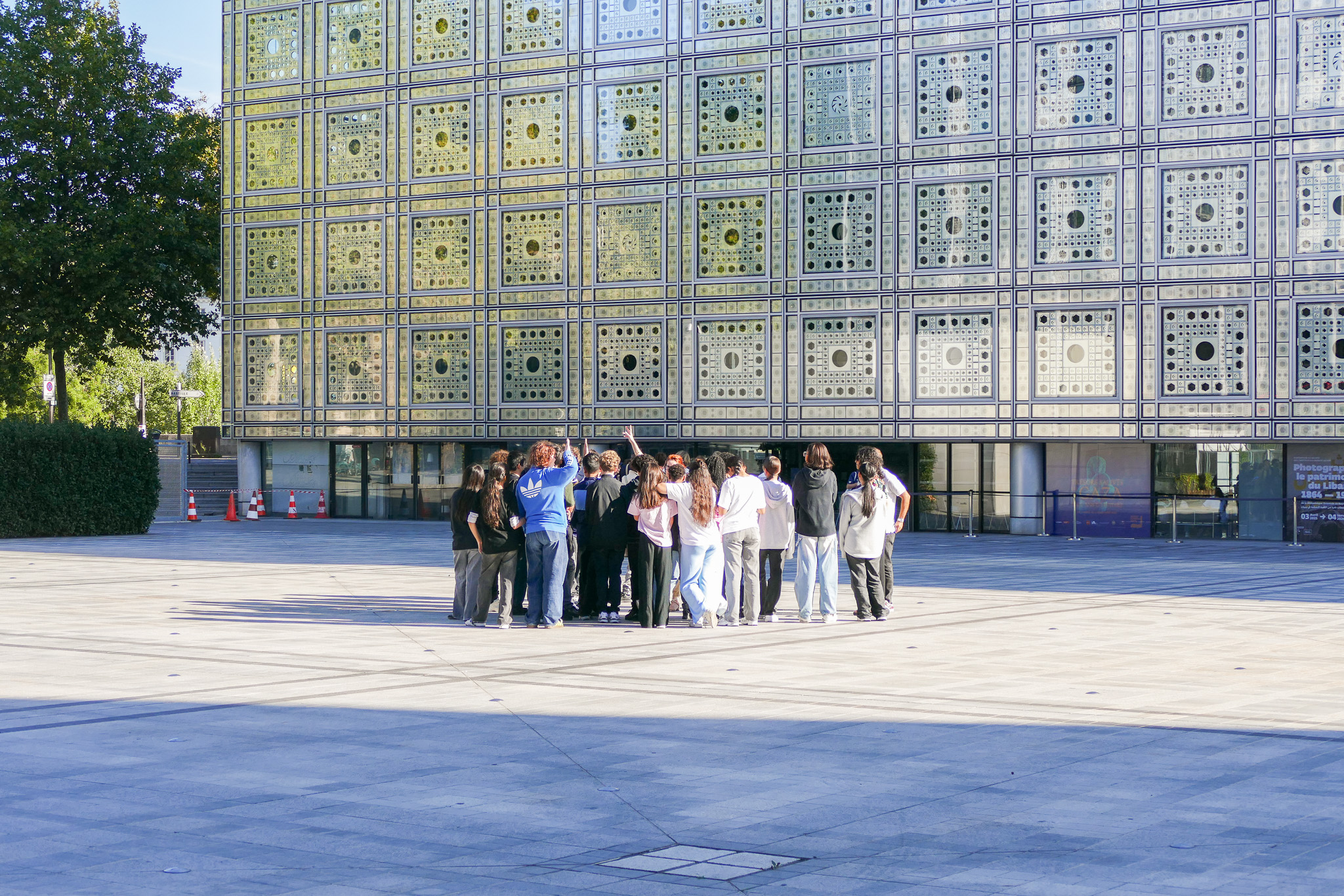 Dans le cadre de la Journée des Enfants du Patrimoine, mes élèves de troisième C et moi-même avons eu l’opportunité de découvrir un lieu unique à Paris : l’Institut du Monde Arabe. Cette sortie s’est révélée être une véritable immersion au cœur d’une architecture qui fusionne subtilement les influences du monde arabe et celles du monde européen.