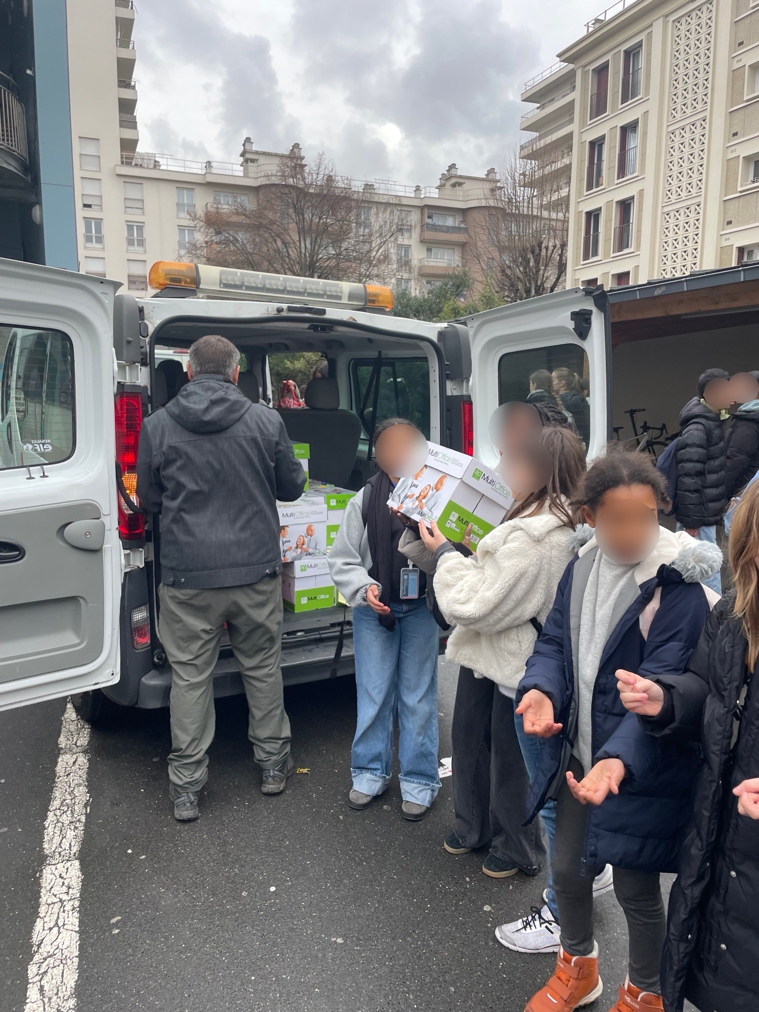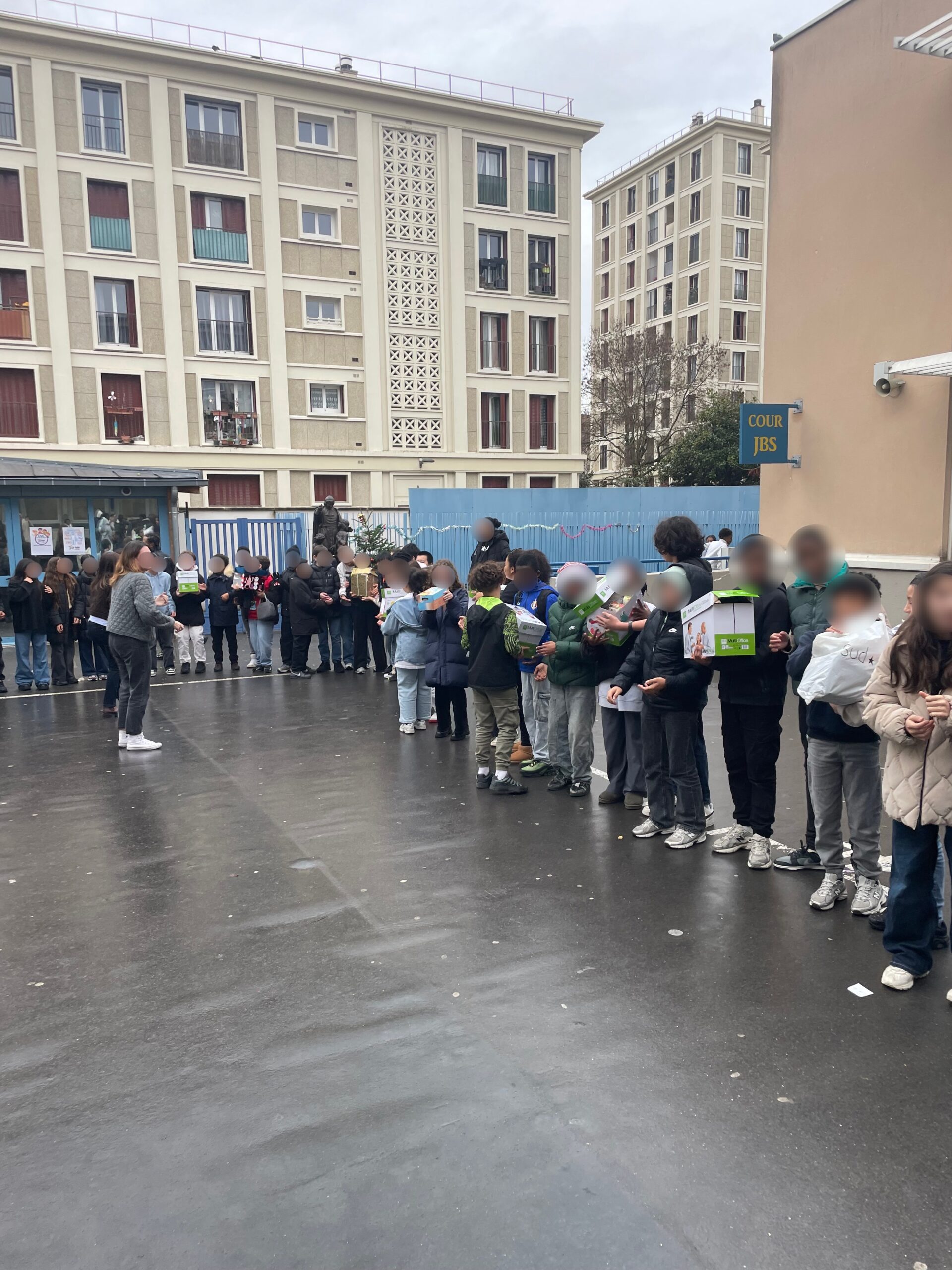 Une boîte dans chaque classe, des élèves engagés, et le jour de la récupération, une magnifique chaîne humaine jusqu’au camion pour remettre les dons… Un vrai moment de partage et de cohésion !